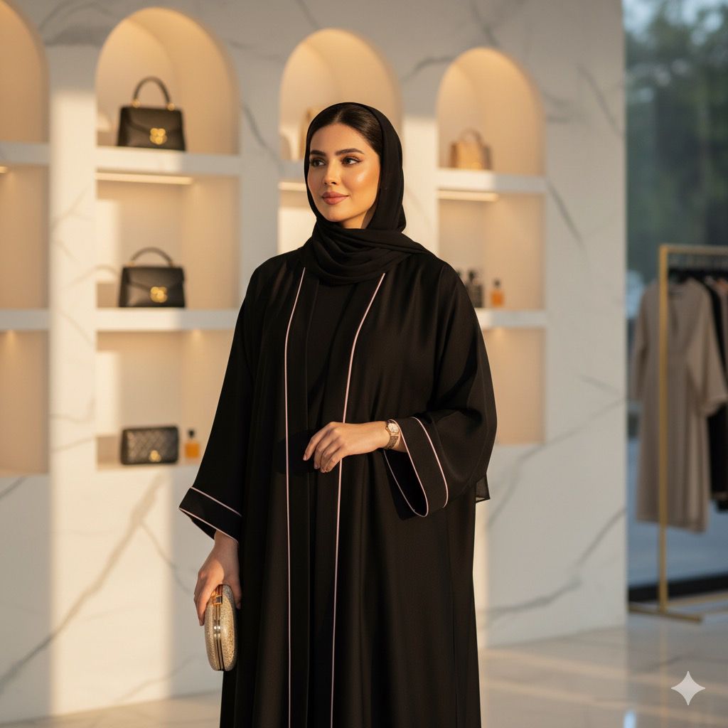 Elegance Noir’ Abaya, a garment that perfectly blends traditional grace with contemporary design. Crafted from a premium,